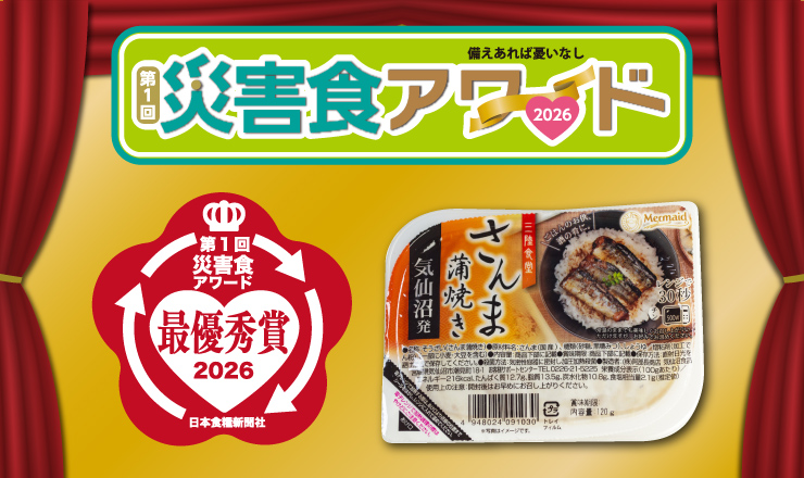 このたび、当社が製造販売する商品「三陸食堂 さんま蒲焼き」が、日本食糧新聞社主催の第1回災害食アワードの主菜部門において最優秀賞を受賞しました。 【...